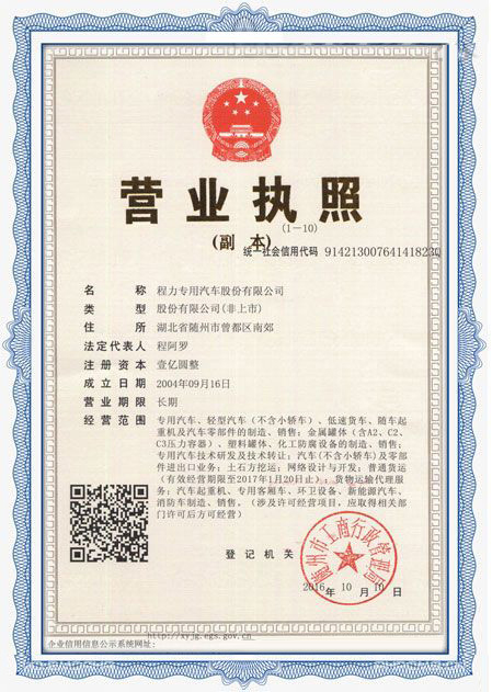 程力專用汽車股份有限公司各類專用汽車的專業廠家,大型專用汽車廠。國內園林綠化、石油化工、市政環(huán)衛、壓力容器專用汽車商。注冊“程力威”牌,產品代碼:“CLW”。東風、解放、福田、重汽、陜汽、北奔等公司的重要合作伙伴,主要從事各類專用汽車的業務,同時也銷售各大型廠家的整車及配件。公司擁有自行出口權,其主導品種有灑水車系列、吸污(吸糞)車系列、垃圾車系列、掃地車系列、油罐加(運)油車系列、高空作業車系列、清障車系列、隨車吊系列、自卸車系列、教練車系列、半掛車系列、化工車系列、消防車系列、廂式(冷藏車)系列、牽引車系列、粉粒物料車系列、攪拌車系列、壓力容器系列、專用車配件等十八大系列300多個品種車型。同時批發(fā)東風、解放、楚風各種二類底盤。